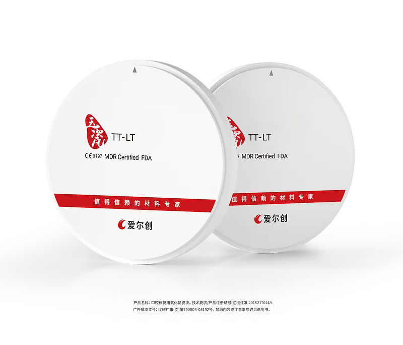 全瓷义齿用氧化锆修复材料,玉瓷旗下材料具有较高的透性,适合制作高仿真美学修复。